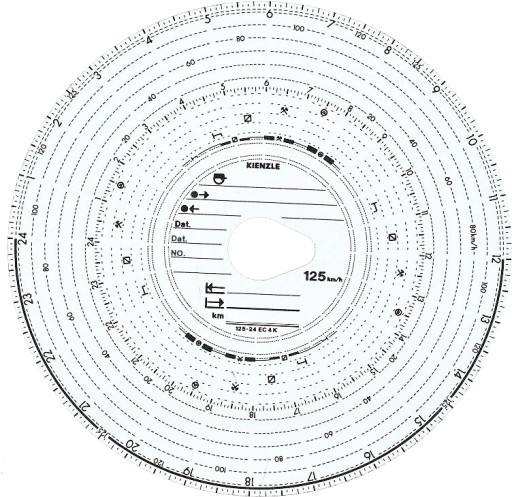 Oryginalne renomowane tarcze do tachografów o zakresie pomiarowym 125 24EC 4K.