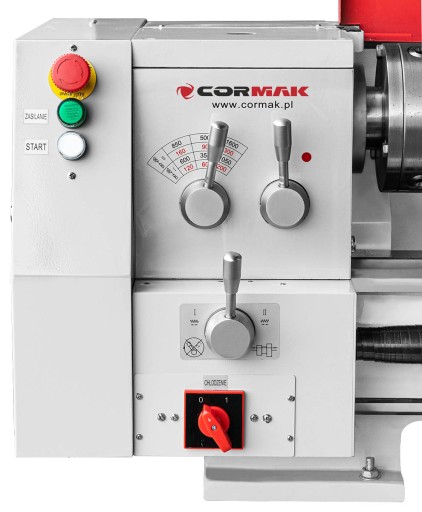 - Tokarka wyposażona w szybki włącznik na suporcie do zmiany kierunku obrotów wrzeciona.