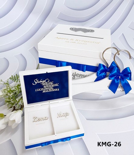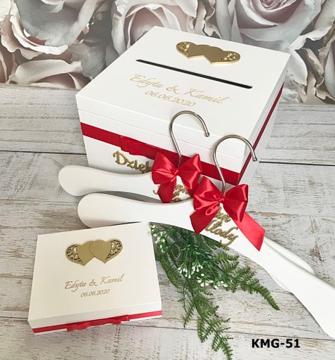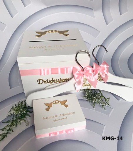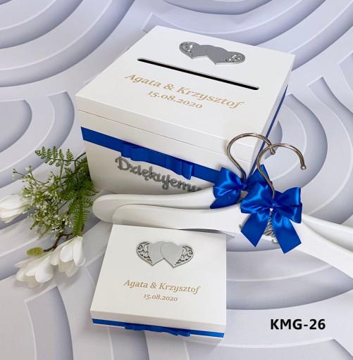 Na boku dekor Dziękujemy ( dekor lakierowany w kolorze złotym lub srebrnym ), pudełko w około przepasane wstążka z kokardą