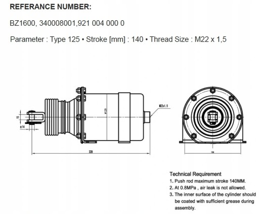 SIŁOWNIK HAMULCOWY PRZYCZEPY PNEUMATYCZNY D125