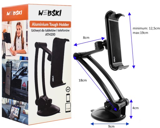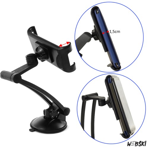 Uchwyt można zamontować na płaskiej i chropowatej powierzchni oraz powierzchę kokpitu i szyby samochodowej. Uchwyt pasuje do telefonów od 4,5 cali, tabletów od 7 cali aż do 11cali oraz nawigacji.