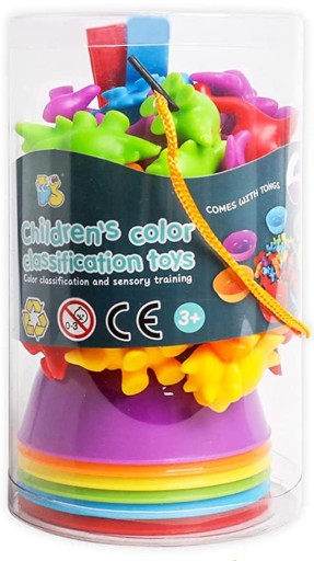 Dziecko może za pomocą plastikowej pęsety segregować kolorystycznie do 6 miseczek tęczowe dinozaury. Może je dzielić po kolorach, a także kształtach. To wspaniała nauka liczenia, dodawanie i odejmowanie będzie proste i przyjemne.