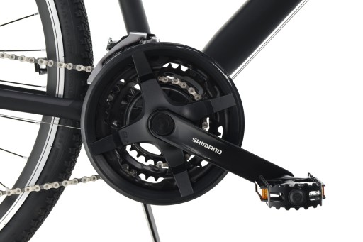 Wytrzymała aluminiowa korba SHIMANO FC-TY301 o długości ramion 170mm. Wyposażona w trzy zębatki o ilości zębów 48/38/28 dla najniżej zębatki, zapewniając tym samym odpowiednią linie pracy łańcucha. Zaprojektowana z myślą o napędach 3x8 i płynnej oraz niezawodnej zmianie przełożeń.
