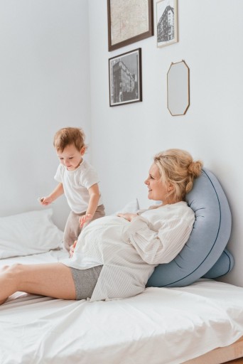 Szukasz poduszki, na której będziesz mogła wygodnie spać przez całą ciążę? Postaw na poduszkę ciążową w kształcie cyfry „9” Organic Petrol – od marki Poofi. Jest przytulna i wygodna, a na dodatek możesz wykorzystać ją także jako poduszkę do karmienia i do późniejszych zabaw z Maluszkiem.