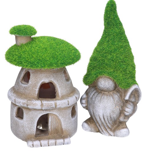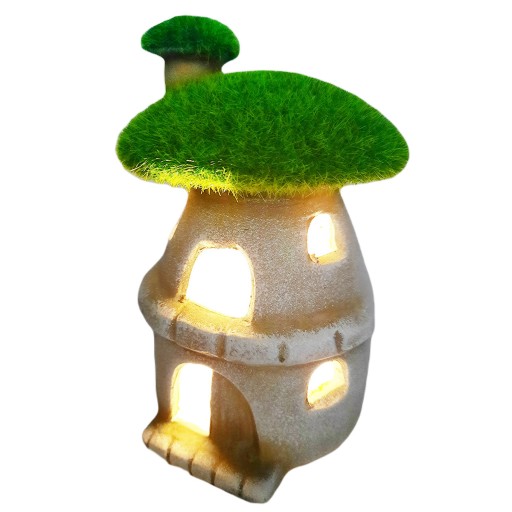 - Ceramiczny, świecący domek - grzybek z omszałym dachem.
