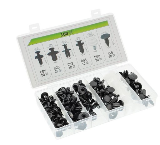 НАБОР АВТОМОБИЛЬНЫХ ЗАЖИМОВ, 100 ШТ.