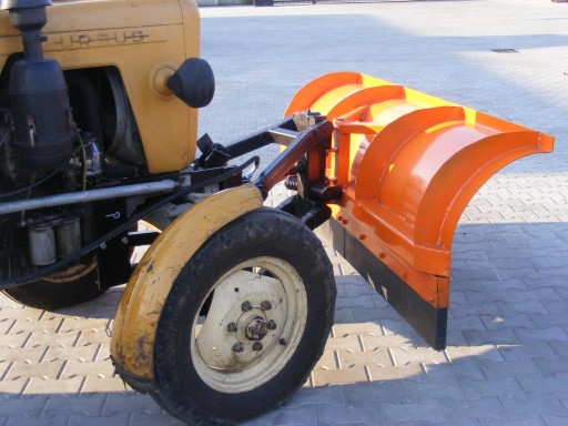 Pług do odśnieżania montowany bezpośrednio na ciągnik, lub na ładowacz podnoszony hydraulicznie – 2 m szerokości, 0,7 m wysokości, wymienny element ścierny – guma 50 mm.