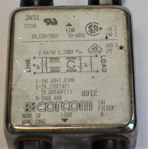 Противопомеховый фильтр CORCOM, 3 А, 250 В.