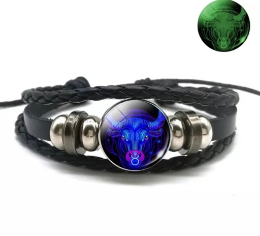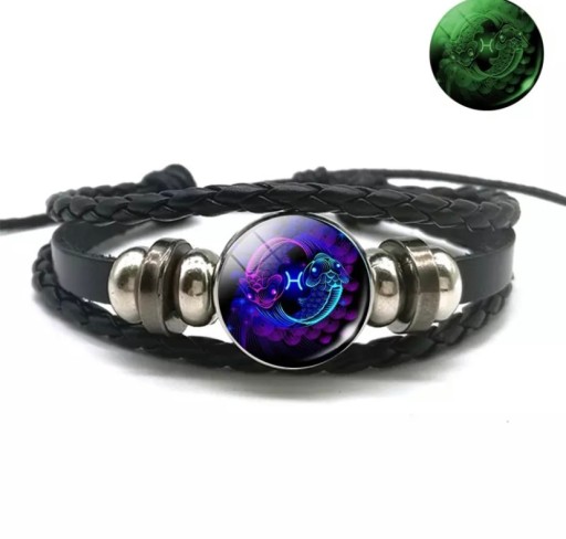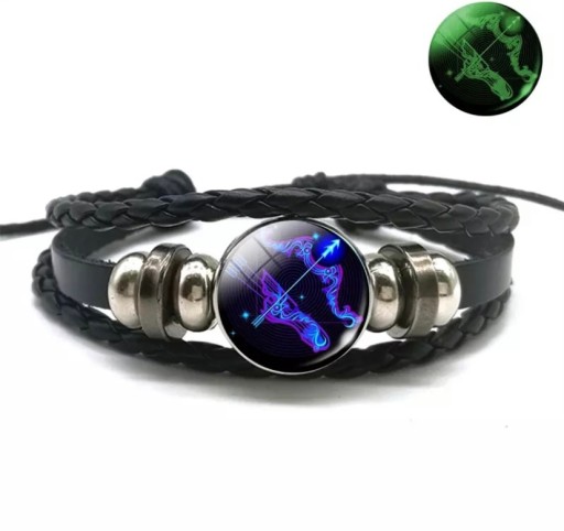 Rewelacyjna bransoletka z symbolem znaku zodiaku . Wykonana z eko skóry, rzemykow i elementow oraz szklanego oczka z symbolem. regulowana . Przy odpowiednim nasyceniu światłem słonecznym oczko święci w ciemności!