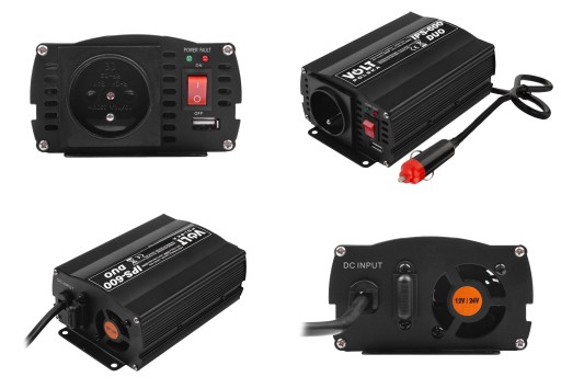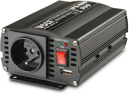 Elektroniczna przetwornica IPS 600 DUO służy do zasilania urządzeń elektrycznych wymagających napięcia przemiennego 230V z akumulatorów i instalacji samochodowych o napięciu stałym 12V lub 24V.