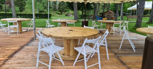 Na innych ogloszeniach znajda Państwo szpule o innych rozmiarach, gotowe szlifowane i wykonczone stoliki, pojedyncze surowe blaty/talerze ze szpuli oraz wykonczone na gotowo w różnych stylach (szlifowane, lakierowane, postarzane, opalane).