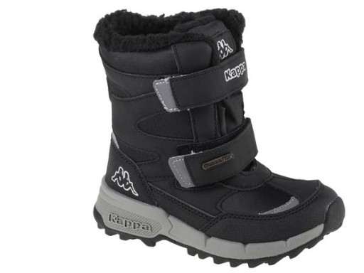 Dziecięce śniegowce Kappa wyposażono w wodoodporną membranę KappaTEX chroniącą przed dostawaniem się wilgoci do wewnątrz. Dziecięce buty zimowe w stonowanej kolorystyce posiadają grubą podeszwę z głębokim bieżnikiem co zapewnia dobrą przyczepność w trudnych warunkach. Wnętrze cholewki dodatkowo wyścielono miłym w dotyku meszkiem zwiększającym komfort termiczny.