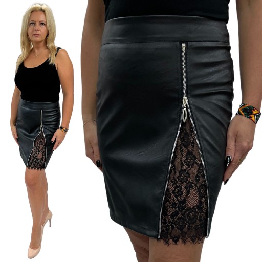 Elegancka i seksowna spódnica KORONKĄ I OZDOBNYM ZAMKIEM. Elastyczna ekoskóra doskonale dopasowuje się do sylwetki, zarówno w pasie jak i biodrach. Zamkiem z przodu regulujesz jak dużo nogi chcesz odsłonić bądź zakryć. Idealna na imprezy, do kina , teatru lub spotkania z przyjaciółmi, Z tyłu zapinana na zamek kryty.
