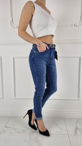 Rewelacyjne dopasowane spodnie jeansowe . Świetne do sportowego obuwia ale idealnie też sprawdzą się w połączeniu ze szpilkami, dzięki swojej uniwersalności, pasują niemal do każdej stylizacji. Elastyczny materiał podkreśla kobiecą sylwetkę. Spodnie są dopasowane, rozciągają się. Podkreśl swoje kobiece kształty! Spraw, by Twój codzienny Look był niepowtarzalny. Spodnie po obu stronach posiadają kieszenie.
