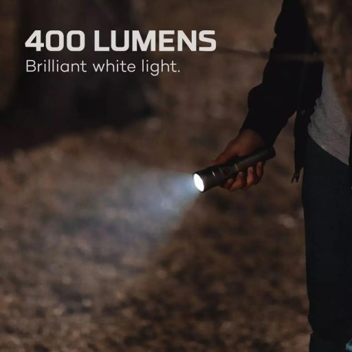 Akumulatorowa ręczna latarka robocza 400 lumenów, w pełni ładowalna, anodowane aluminium lotnicze, wodoodporność (IPX4), zwijany pasek / klips do kieszeni, 4x zoom, ustawienie pamięci mocy, podstawa magnetyczna, latarka wysoka: (400 lumenów) 2 godziny / 89 metrów , Latarka niska: (40 lumenów) 20 godzin / 28 metrów, białe światło zadaniowe 120 °, wysokie: (75 lumenów) 10 godzin / 11 metrów, białe światło zadaniowe 120 °, niskie: (10 lumenów) 26 godzin / 4 metry, biała latarnia 360 ° wysokie: (200 lumenów) 2 godziny / 13 metrów, White Lantern 360 ° niskie: (20 lumenów) 13 godzin / 4 metry, kabel do ładowania micro-USB, akumulator, przycisk umieszczony z jednej strony do wyboru zasilania i trybu.