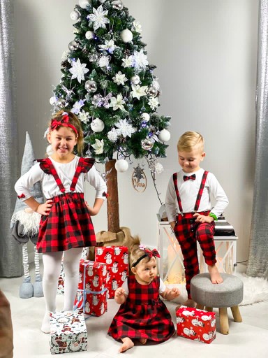 Zapewnij swojemu chłopcu efektowny strój podczas świąt Bożego Narodzenia, a także takich uroczystości jak chrzciny czy wesele! Nasz garnitur w kratkę, który idealnie sprawdzi się także podczas sesji świątecznych na przykład z okazji mikołajek. Wzór w czerwono - czarną kratkę jest ponadczasowy i elegancki. Komplet obejmuje marynarkę z zapięciem na dwa guziki oraz zwężane spodnie z lekko obniżonym krokiem. Spodnie posiadają dwie kieszenie po bokach, a także dopinane szelki dodające całości dużo uroku. Wszystkie Nasze produkty są szyte ręcznie z miłością w Polsce, przez ludzi pełnych pasji! A to sprawia, że każdy Nasz produkt jest jedyny w swoim rodzaju i nigdzie się nie powtórzy!