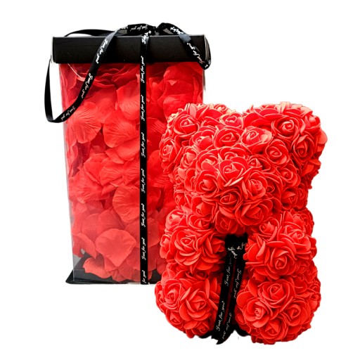 - ❤️Po trzecie, nasze misie są owocem ręcznej pracy, gdzie każdy płatek róż jest starannie i precyzyjnie przyklejany osobno. To nie tylko gwarancja najwyższej jakości, ale także odzwierciedlenie naszej troski o stworzenie produktu, który przetrwa próbę czasu.