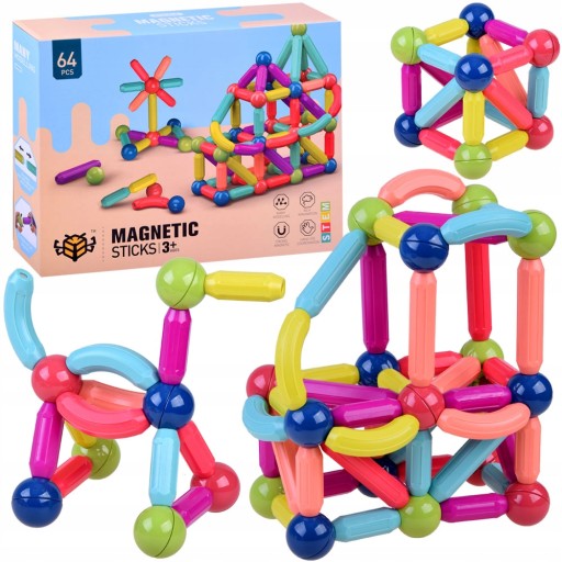 Zestaw składa się z wielu kolorowych, magnetycznych elementów, dzięki czemu przemieni dziecko w małego architekta, pobudzi wyobraźnię i pomoże rozwinąć zdolności konstruowania.