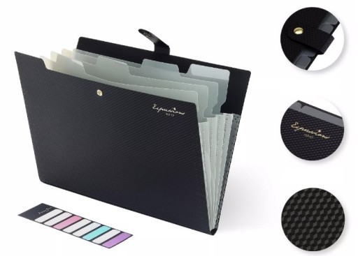 Oszczędza czas - 5 kieszenie z górnymi zakładkami tworzą niezależne miejsca na dokumenty. Można podpisać kieszenie do sortowania dokumentów według kategorii, co skraca czas wyszukiwania dokumentów.