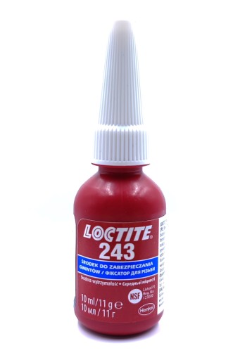 Klej LOCTITE 243 jest metakrylanowym, jednoskładnikowym produktem anaerobowym do zabezpieczania połączeń gwintowych, który uszczelnia oraz zabezpiecza nakrętki i śruby, aby uniemożliwić ich poluzowanie w wyniku uderzeń i wstrząsów.