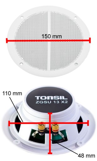 UWAGA NA SPRZEDAJĄCYCH OFERUJĄCYCH TAŃSZE ZESTAWY Z GŁOŚNIKAMI SAMOCHODOWYMI O IMPEDANCJI 4 OHM Z OSOBNYMI MASKOWNICAMI. SĄ TO GŁOŚNIKI SAMOCHODOWE Z DOBRANYMI MASKOWNICAMI NIE NADAJĄCE SIĘ DO NAGŁOŚNIENIA SUFITOWEGO, GDYŻ ICH KONSTRUKCJA POZWALA NA PRACĘ W POZYCJI PIONOWEJ LUB POZIOMEJ MEMBRANAMI W GÓRĘ - ODWROTNIE NIŻ W NAGŁOŚNIENIU SUFITOWYM.