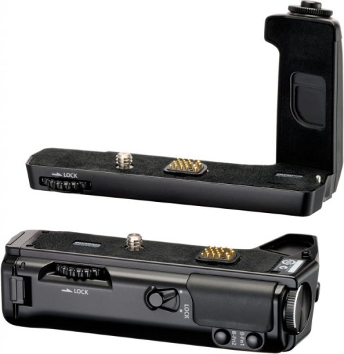 Dolna część posiada spust migawki przyczyniający się do większego komfortu i szybkości obsługi, gdy trzymasz aparat w układzie pionowym, a także oferuje on dwa dodatkowe pokrętła i przyciski fn ułatwiające szybką regulację ustawień w tej pozycji. Obydwie ergonomicznie zaprojektowane części tworzą naturalnie układający się w dłoni, pewny uchwyt znacznie poprawiający stabilność trzymania aparatu. Aby zapobiec przypadkowemu uaktywnianiu przycisków, na uchwycie wprowadzono też przełącznik blokady przycisków. Dodatkową baterię (nie jest załączana w komplecie) można wsunąć do dolnej części uchwytu, co znacznie wydłuża ogólną żywotność baterii zapewniając tym samym dłuższy czas fotografowania.