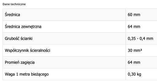 Wąż wyciągowy wentylacyjny PU średnica 60mm 1metr
