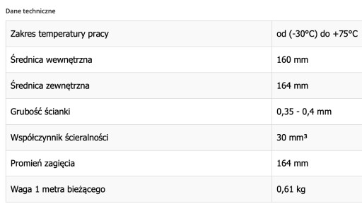 Wąż wyciągowy wentylacyjny PU średnica 160mm 1metr