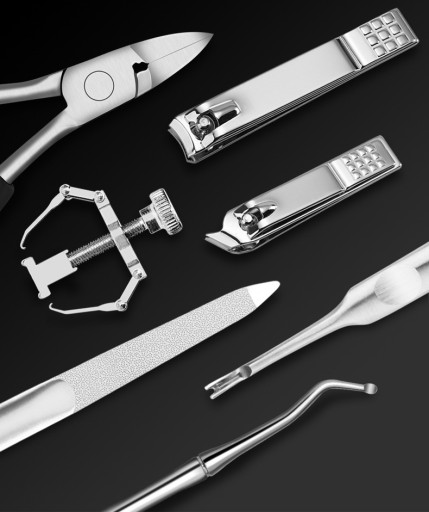 Zestaw narzędzi zawiera wszystko, co jest potrzebne do pielęgnacji dłoni, stóp i twarzy, jest on przystosowany do różnych sytuacji.