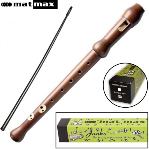 Przedmiotem oferty jest Flet prosty Janko firmy MatMax - idealny do nauki w szkole (polecany przez nauczycieli muzyki) oraz stawiania samodzielnie pierwszych kroków.