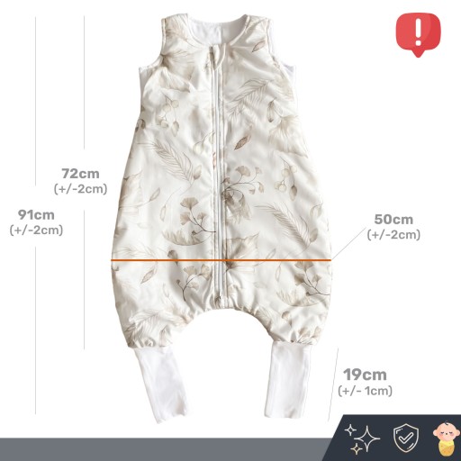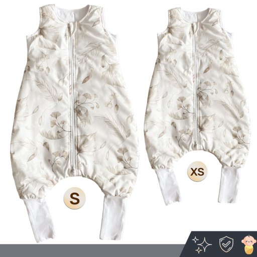 Należy jednak pamiętać, że rozmiary są umowne. Np. dla drobniejszych dzieci rozmiar XS starczy na dłużej. Śpiworki na nogawkach posiadają materiał, który można wywinąć.