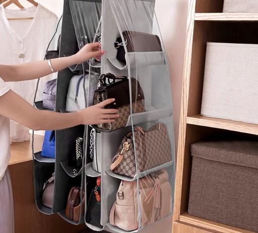 Pozwala na uporządkowanie i schowanie torebek w jednym miejscu i uniknięcie ich rozrzucenia po całej szafie
