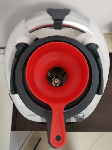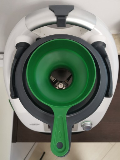Poniżej realne zdjęcia, pokazujące rozmiary lejka na tle Thermomix'a i MMC.