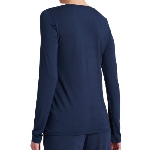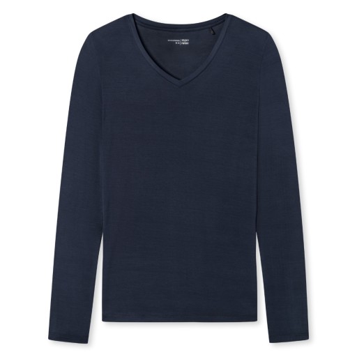 Ta podstawowa koszulka z długim rękawem dla kobiet to przytulny must-have! Dzięki przyjemnemu krojowi cudownie lekko otula ciało. Dekolt w kształcie litery V uzupełnia swobodny wygląd. Sekretem dobrego samopoczucia jest elastyczny single jersey z naturalnego modalu. Super miękki materiał schlebia skórze, jest oddychający i łatwy w pielęgnacji. Wystarczy połączyć ją z pasującymi spodniami z serii Mix+Relax - i masz luźny styl w najwyższej jakości!