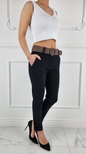 Elastyczne spodnie cygaretki, posiadają wysoki stan. Świetne połączeniu ze szpilkami, dzięki swojej uniwersalności, pasują niemal do każdej stylizacji. Elastyczny materiał podkreśla kobiecą sylwetkę. Spodnie są dopasowane, rozciągają się. Podkreśl swoje kobiece kształty! Spraw, by Twój codzienny Look był niepowtarzalny.