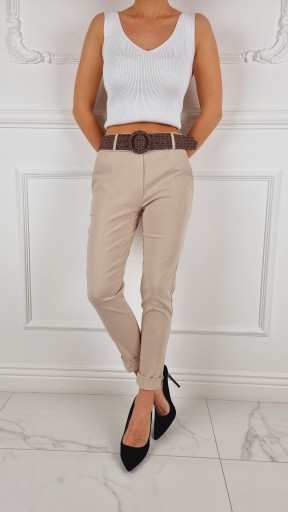 Elastyczne spodnie cygaretki, posiadają wysoki stan. Świetne połączeniu ze szpilkami, dzięki swojej uniwersalności, pasują niemal do każdej stylizacji. Elastyczny materiał podkreśla kobiecą sylwetkę. Spodnie są dopasowane, rozciągają się. Podkreśl swoje kobiece kształty! Spraw, by Twój codzienny Look był niepowtarzalny.