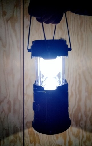 Lampa może świecić po rozsunięciu jako lampka kempingowa.