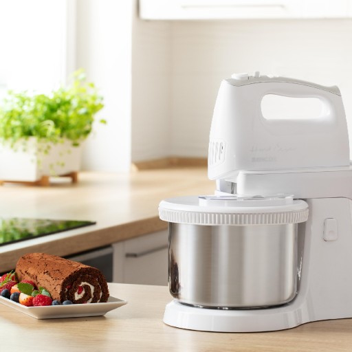 Mikser ręczny marki Sencor został wyposażony w dwa komplety nakładek. W zestawie znalazły się trzepaczki do ubijania śmietany, puree ziemniaczanego, różnego rodzaju past i kremów. Drugi rodzaj akcesoriów to haki do mieszania ciasta. Tym sposobem urządzenie zyskało na funkcjonalności.