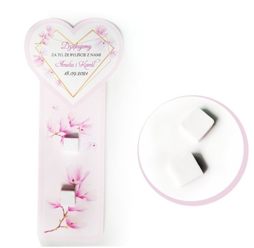 10 szt. podkładek do czekoladek MERCI, wraz z dwustronną taśmą do przyklejenia czekoladki (2 kosteczki do każdej zawieszki).