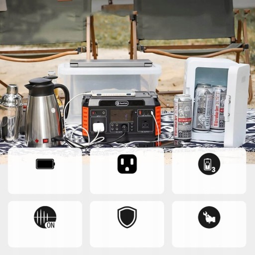 Zasilacz FlashFish 520 Wh jest wyposażony w akumulator litowy, może być skutecznie ładowany przez panel słoneczny 13-22 V(w zestawie) , zasilacz sieciowy (w zestawie) i ładowarkę samochodową (w zestawie).
