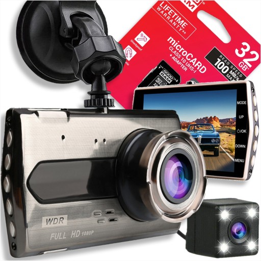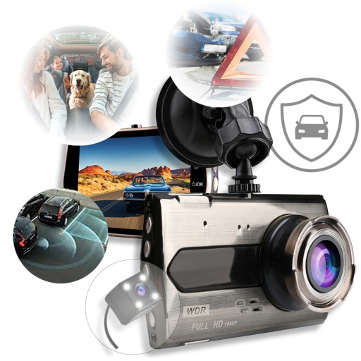 Nagrania w pętli ➡️ G-Sensor ➡️ Tryb parkingowy ➡️ Duży ekran 4" ➡️ Obsługa kart 64GB ➡️ Nagrania FullHD ➡️ Asystent parkowania ➡️ Wysokie kąty widzenia ➡️ Kamera cofania ➡️ Nowoczesny procesor ➡️ Czujnik ruchu