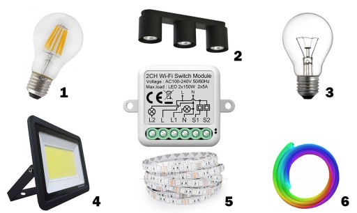 Moduł dopuszkowy, sterownik oświetlenia WiFi Tuya do sterowania ON/OFF: oświetleniem sufitowym, kinkietami, taśmami LED przy pomocy urządzeń mobilnych, instalacja jest bardzo prosta i intuicyjna.