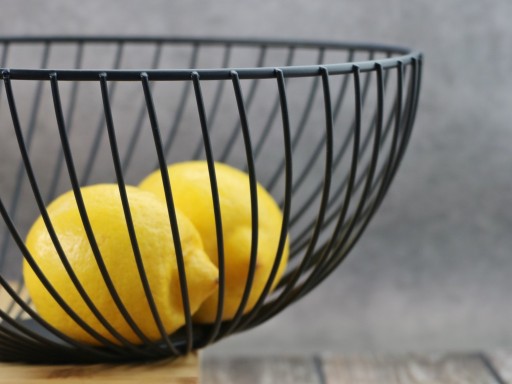 Klasyczny metalowy koszyk, w którym owoce nie tylko pięknie się prezentują, ale też nie ulegają tak łatwo zepsuciu, ponieważ dzięki otwartym ściankom mają zapewnioną cyrkulację powietrza.