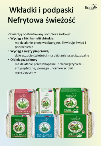 Podpaski na co dzień na bazie ziół „Nefrytowa świeżość“ Super to nowe pokolenie produktów higienicznych z opatentowanym kompleksem ziołowym, który został opracowany w Instytucie Naukowo-Badawczym w Kantonie. Zioła wchodzące w skład kompleksu: