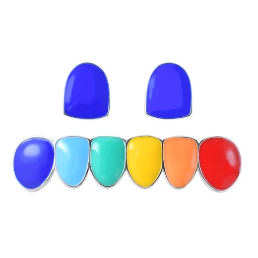 Niebieski Kolorowy Błyszczący Hip Hop Ostry Grill Hollowen Akcesoria Białe Złoto