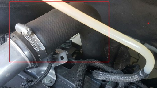 Po otwarciu maski przewód intercoolera jest widoczny w centralnej części komory silnika. Przebiega nad pokrywą głowicy silnika, następnie opada pionowo w dół do tłumika drgań turbiny.