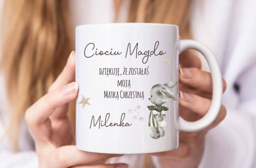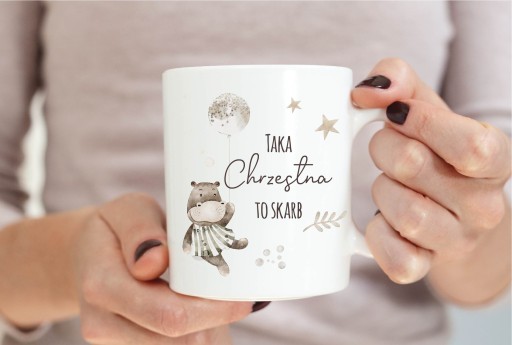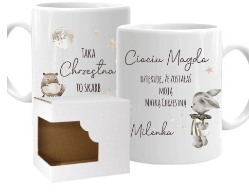 Przedmiotem aukcji jest 1 kubek z kartonikiem. W celu zakupienia kompletu kubków dla Chrzestnych należy doda 2 produkty do koszyka