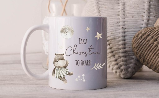 Kubek CHRZEST podziękowanie dla CHRZESTNYCH boho CHRZEST UPOMINEK w1
