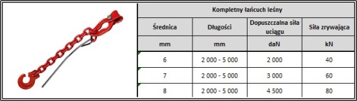 ZASTOSOWANIE: Łańcuch przystosowany do zrywki leśnej oraz innych prac leśnych, prac rolniczych. Łańcuch zakończony z jednej strony szpilką, z drugiej strony znajduje się hak zrywkowy ślizgowy. Dopasowany kształt haka zapewnia pewne zahaczenie z łańcuchem bez możliwości samoczynnego odczepienia oraz łatwe przesuwanie się po łańcuchu o przekroju kwadratowym przy zaciskaniu się na kłodzie drzewna.
