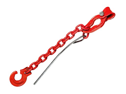 Łańcuch zrywkowy 8 mm o przekroju kwadratowym "D" z hakiem zrywkowym i szpilką + zamek ślizgowy z ogniwem w klasie G80 i dopuszczalną siłą uciągu 45[kN]